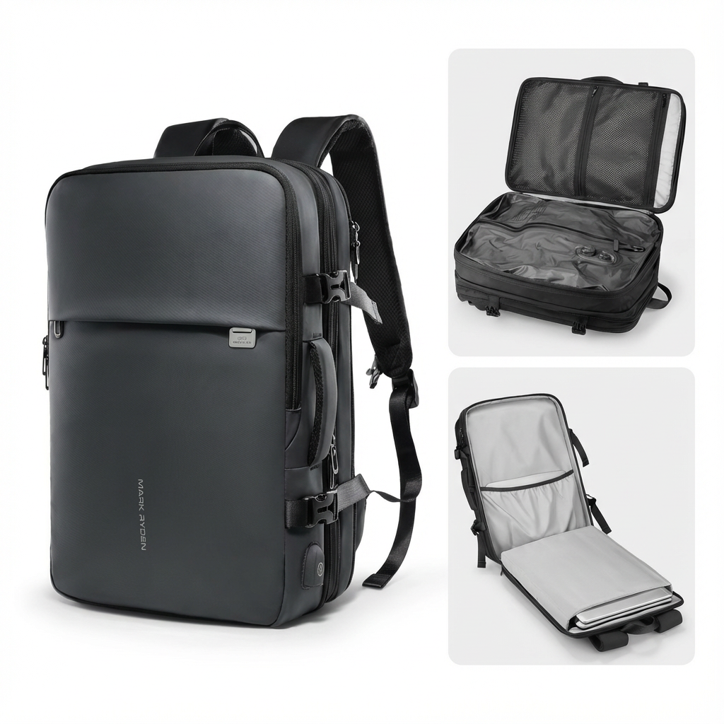 Ce sac à dos pour ordinateur de la marque Mark Ryden combine une capacité extensible jusqu'à 55L et un design professionnel sobre. Idéal pour les voyages, les déplacements d'affaires ou les trajets quotidiens, il permet de transporter un PC 17,3 pouces et l'ensemble de vos affaires grâce à ses compartiments intérieurs bien pensés . Son port USB intégré et sa matière résistance font de lui un choix fiable pour les utilisateurs actifs.
